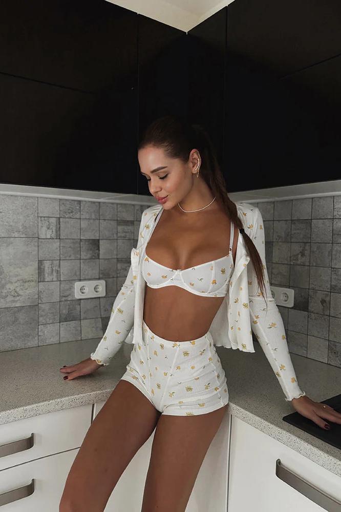 Çiçek Desenli Yelek Tarzı Pijama Takımı